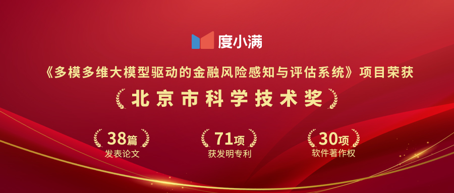 11月7日,2024年度北京市科学技术奖公布,38位科学家、193项成果获奖。度小满与中科院自动化所联合申报的“多模多维大模型驱动的金融风险感知与评估系统”荣获北京市科学技术奖科学技术进步奖。